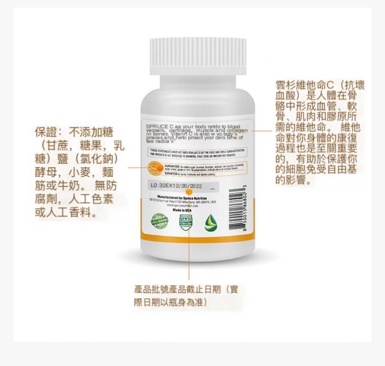 【SPRUCE NUTRITION】「增強免疫力、補充身體每天所需的基礎營養」、「減輕藥物毒副作用」、「維持皮膚粘膜健康」、「代謝減少黑色素生成、淡化、減少黑色素沉積、修復細胞、美白、抗衰老等功效」30粒裝(美國原裝進口行貨)美國雲杉 SPRUCE